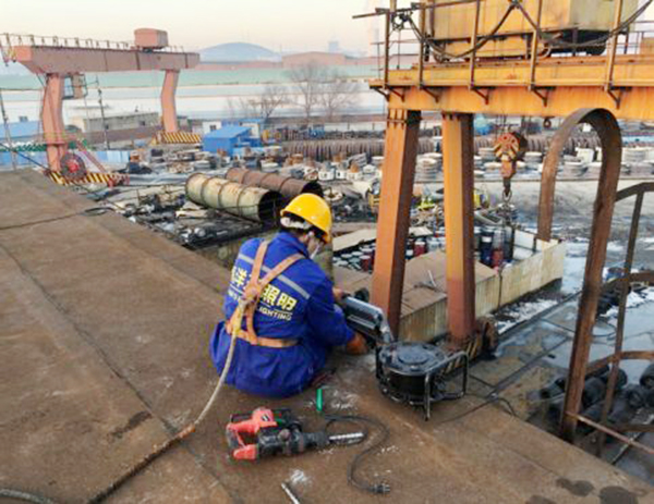 在安装过程中出现了一个问题,由于所有五金店都不营业,安装灯具所需的扎带不足,这可如何是好?向客户询问后得知,库房可能有扎带。两人赶到库房,与库管一起找了近1个小时,将库房翻了个底朝天,终于找到半袋扎带!几经周折,最终安装好了车间顶棚灯具。没想到这时,客户又提出了新需求:打砂车间室外作业需要1盏灯提供夜间作业照明。于是,他们又马不停蹄地与设备员一起勘察现场,确定方案后立即行动,顺利完成安装。