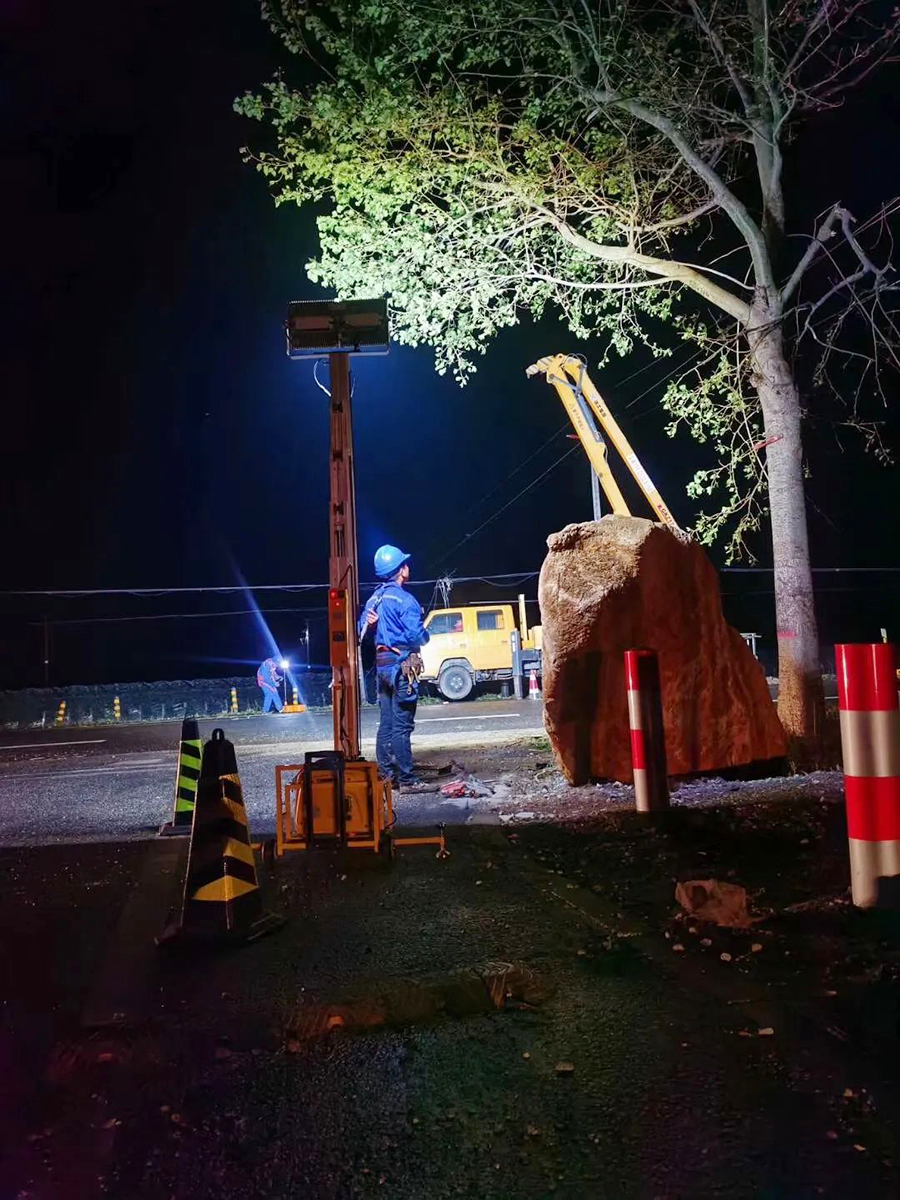 由于电力设施受损范围广,整晚的抢修中三次更换场地。服务部的员工不但事前做好搬运、加油等准备工作,还需要全程紧跟客户参与灯具布点。直到19日凌晨3点, 整个抢修行动才结束。此次行动海洋王人表现出的积极主动、专业负责的态度和职业素养得到了客户充分的肯定。